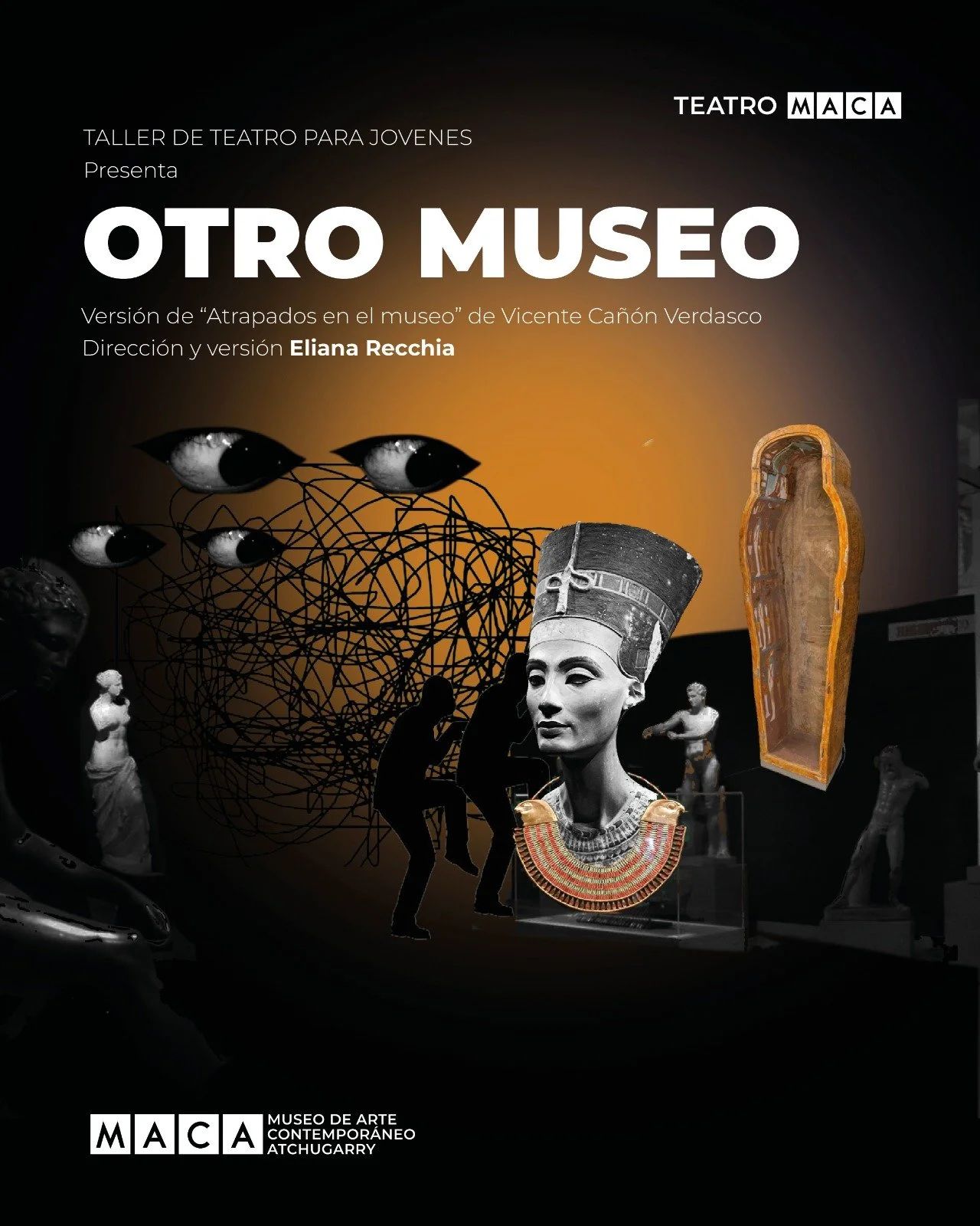 El taller fue dictado entre agosto y diciembre por Eliana Recchia, directora del Teatro MACA, quien acompañó a los jóvenes en la creación integral de una obra teatral. Este proceso incluyó entrenamiento actoral, exploración de escenas, composición de personajes y trabajo colectivo junto al equipo artístico del museo.